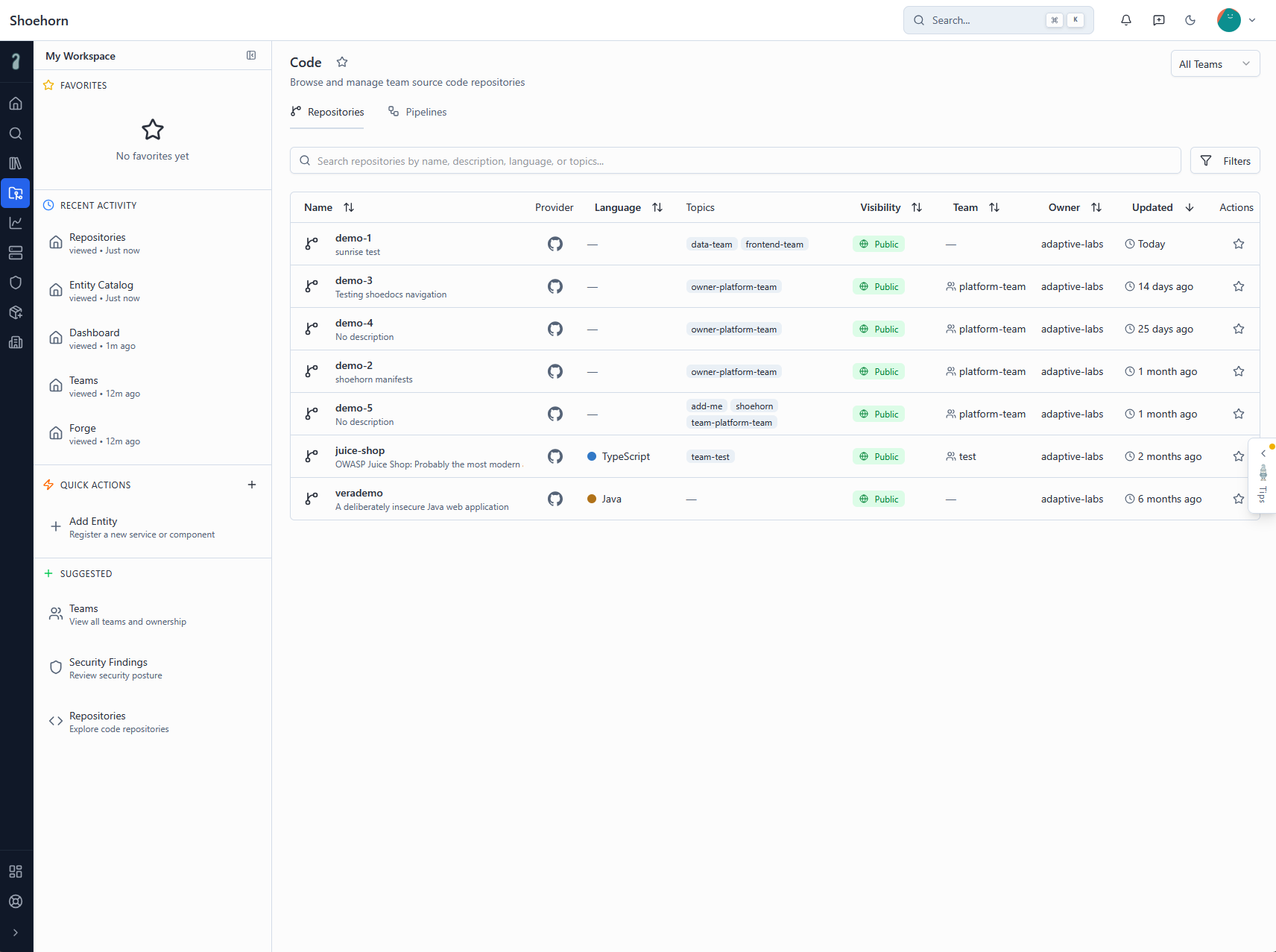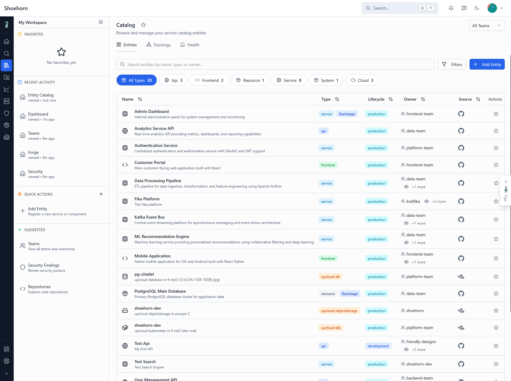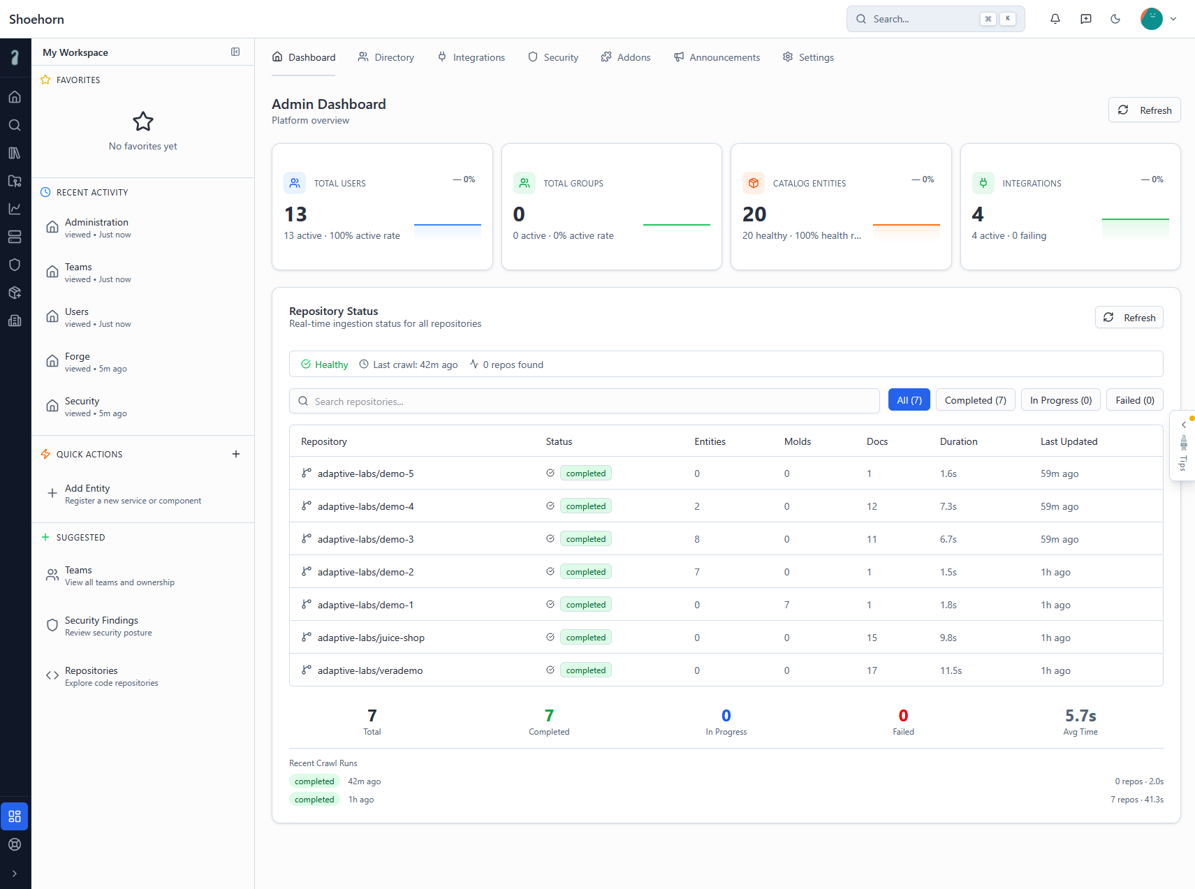 When something changes in your repos or clusters, Shoehorn picks it up. No cron jobs, no manual imports — it just stays current.